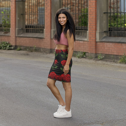 Elegant Floral Women's Pencil Skirt, Rose Print Skirt, Trendy Office Wear, Date Night Outfit, Floral AOP Skirt, Gift for Her