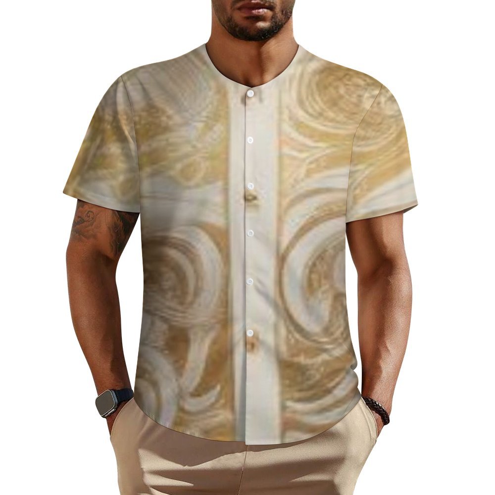 • Classic crewneck design with button placket, personalized all-over print shirt for men.