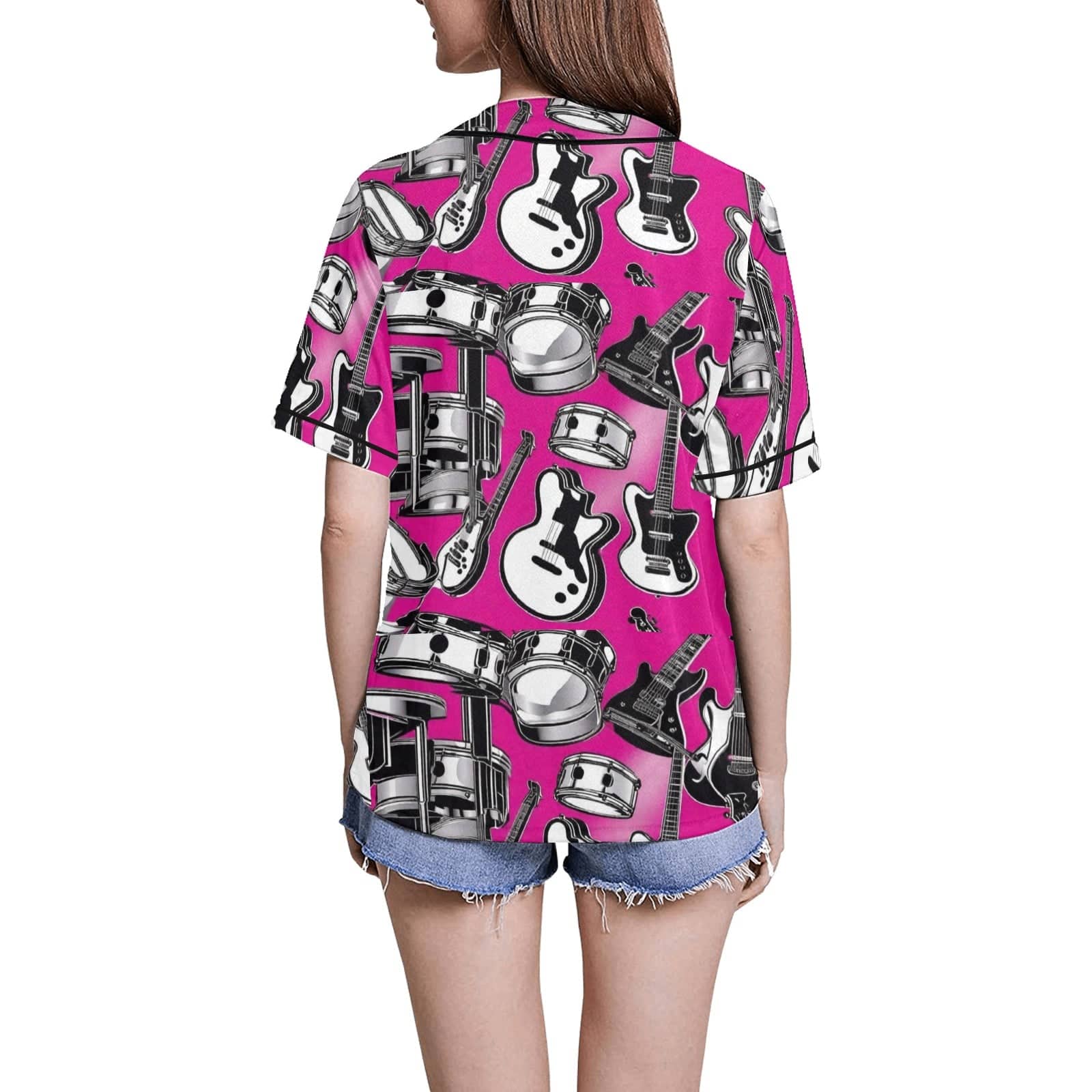 • Features full-button front and rounded hem.